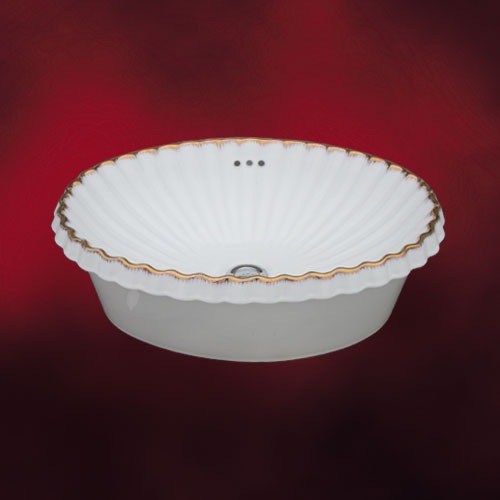 【廃番】洗面ボウル おしゃれ 金縁 陶器 置き型 オーバーフロー有り W570×D420×H175 INK-0401039H