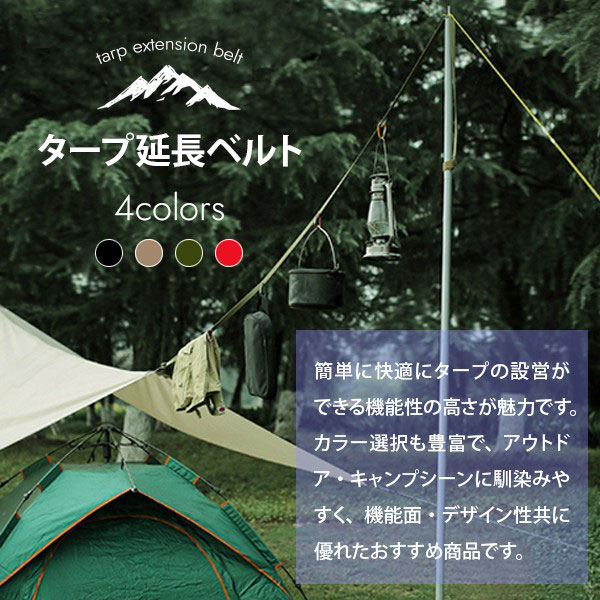 タープ延長ベルト タープ テント 設営 ベルト 延長ベルト 設営グッズ 屋外ロープ 多機能物干しロープ カラビナ付き 小川張り キ...