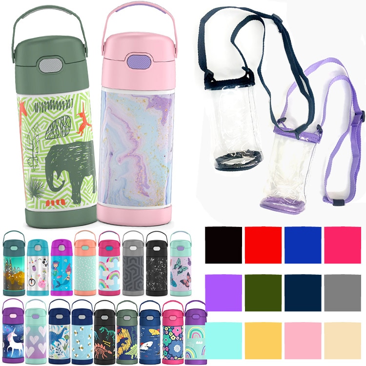 サーモス 水筒 子供 水筒カバーセット デザイン ストロー水筒 肩ひも ストラップ 355ml 男の子 女の子 無地 おしゃれ 子...