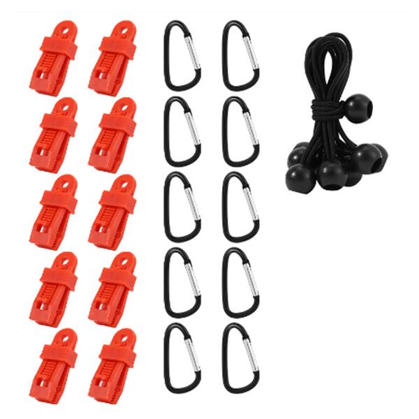 アウトドア ボール付き バンジーコード タープクリップ カラビナ 各10個セット 吊り下げ 日除け キャンプ テント 取り付け 固...
