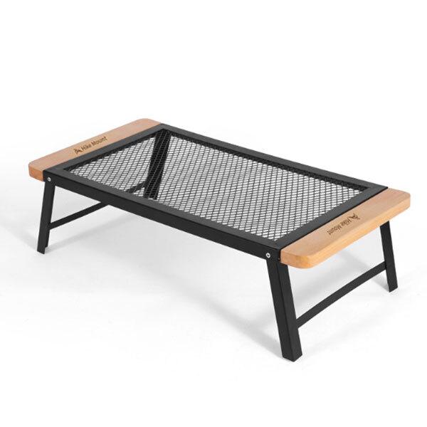 アウトドア 折り畳み式 メッシュラック メッシュテーブル ミニテーブル 両サイド 木目デザイン ポータブル 登山 キャンプ バーベ...