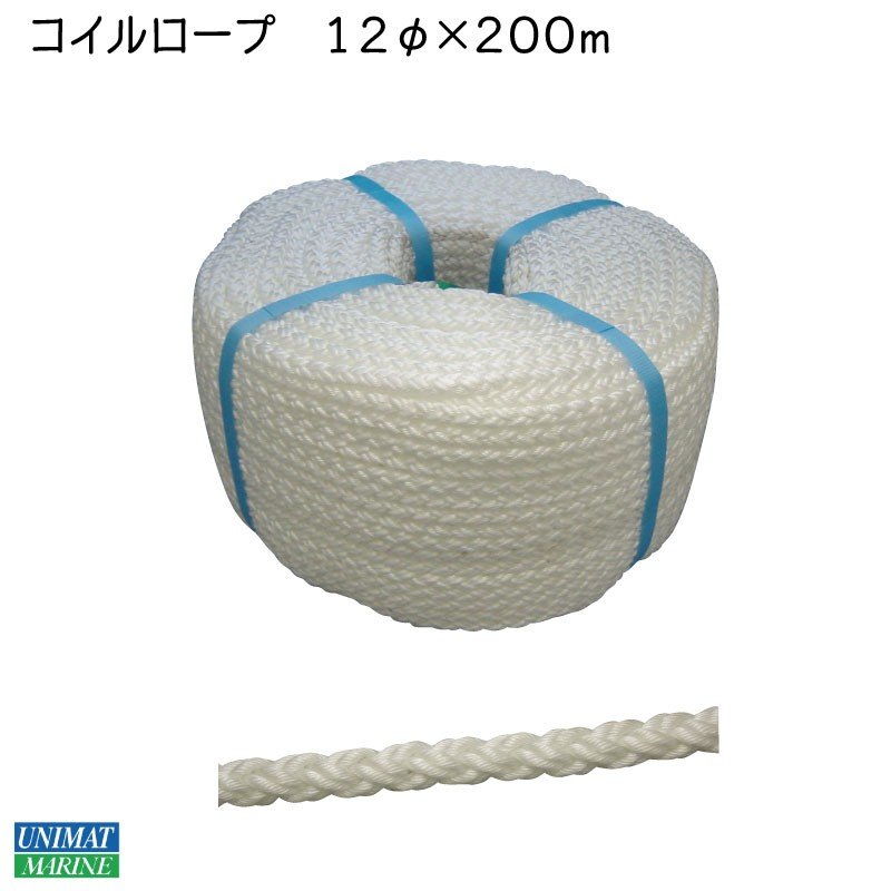 <メーカー直送>コイルロープ 8つ打ち ポリプロピレン 直径12mmx全長200m 浮く
