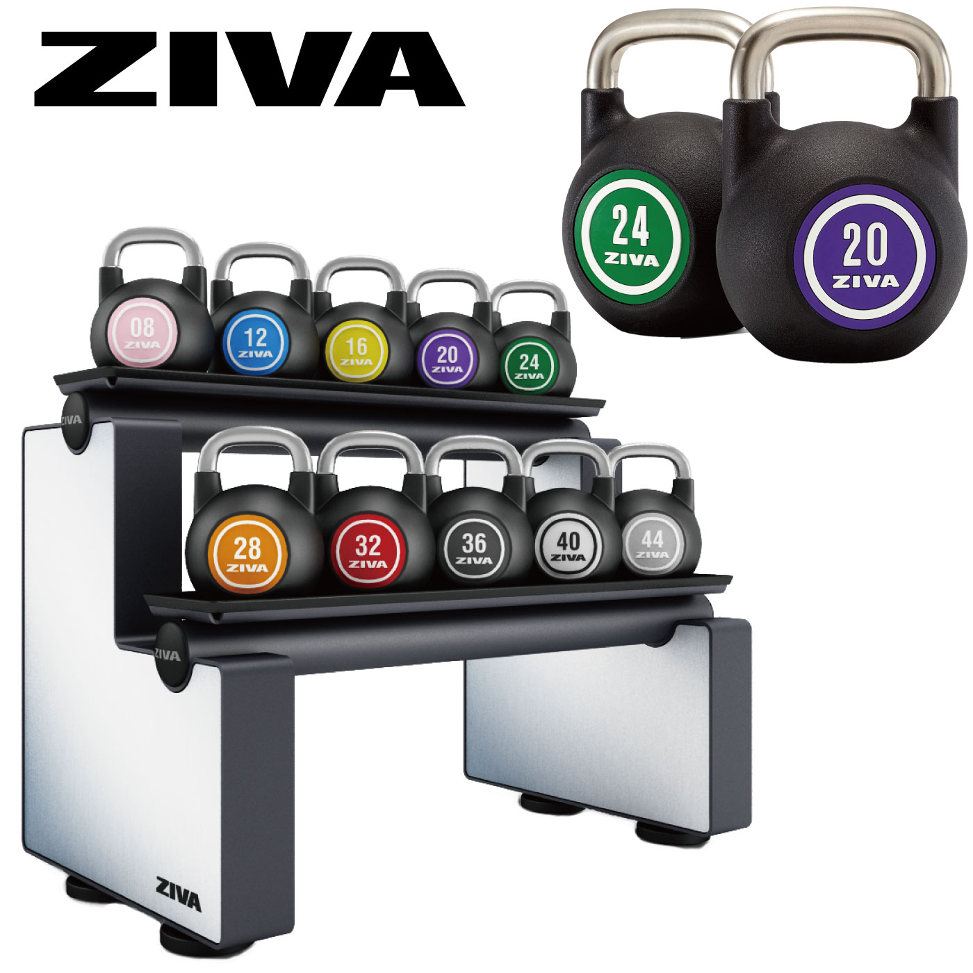 ウレタンコンペティション ケトルベル10個+EXケトルベルラックセット(4kg-48kg)【ダンベル 鉄アレイ バーベル】〈業務用...