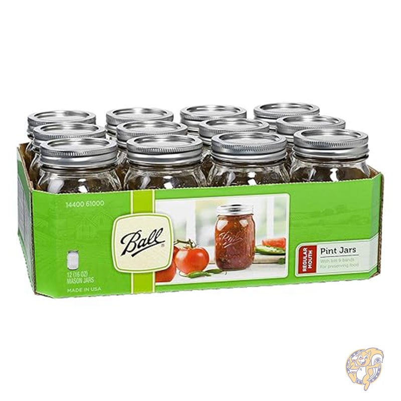メイソンジャー レギュラーマウス 16オンス 453g 蓋とバンド付き (12 個入り) ボール Ball