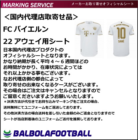 <オフィシャル>FCバイエルン22アウェイ用シート
