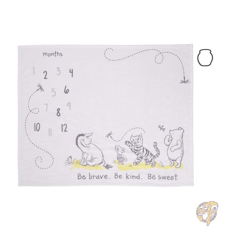 ディズニー Disney クラシック くまのプーさん ホワイト グレー ライム スーパーソフト マイルストーン ベビーブランケット...