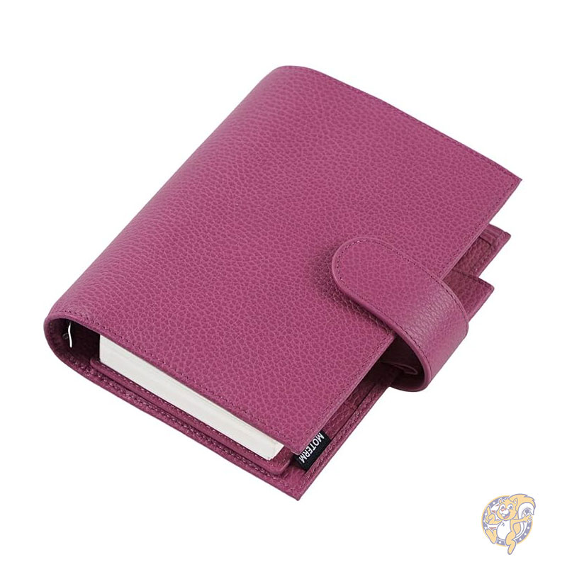手帳 パーソナル リュクス リング プランナー 本革バインダー オーガナイザー 30mm リング フクシア ローズ ルーズリーフ式...