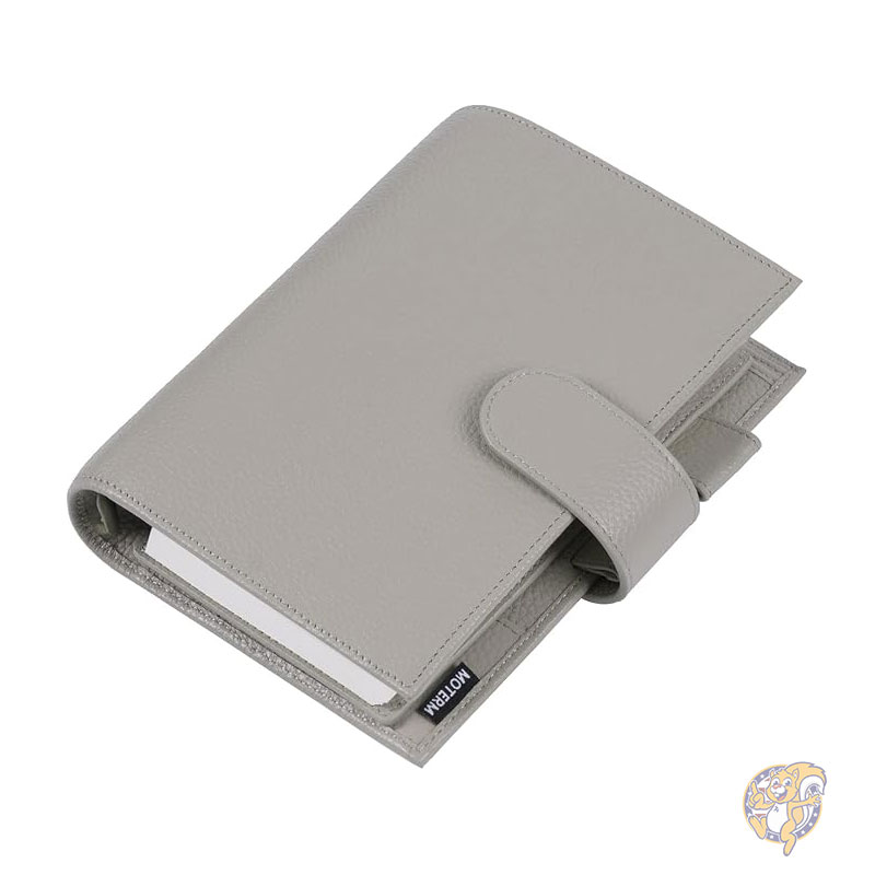 手帳 パーソナル リュクス リング プランナー 本革バインダー オーガナイザー 30mm リング ペブル グレー ルーズリーフ式手...