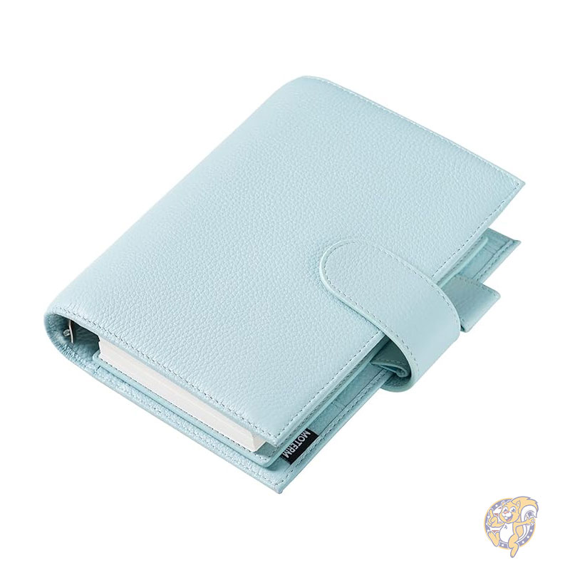 手帳 パーソナル リュクス リング プランナー 本革バインダー オーガナイザー 30mm リング ペブル ライトブルー ルーズリー...