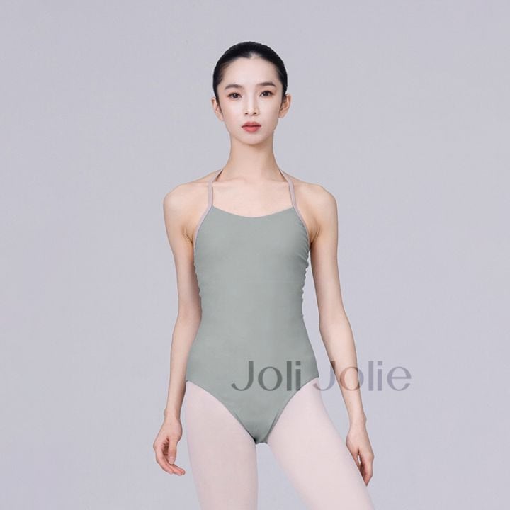 キラッと光沢素材ハーフバックハイレグレオタード・グリーン