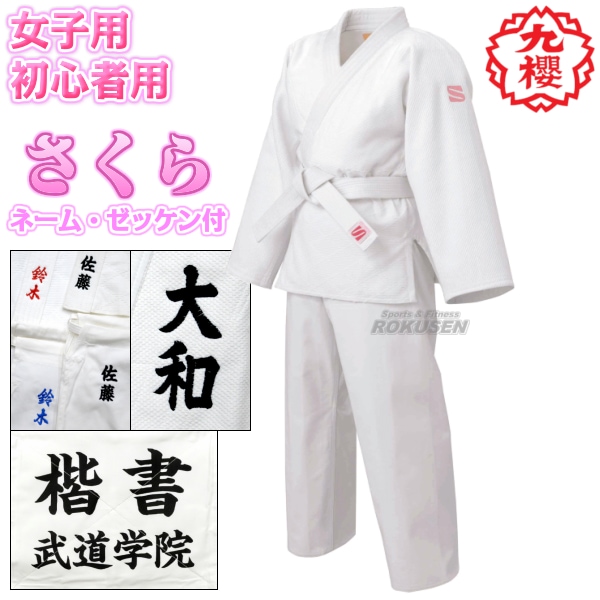 九櫻・九桜 さくら 女子用一重織柔道着(背継仕上) JSL 上下帯セット ネーム刺繍・ゼッケン・胸ネーム付き 柔道衣 九櫻柔道着 ...