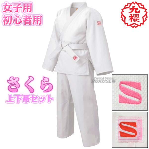 九櫻・九桜 さくら 女子用一重織柔道着(背継仕上) JSL 上下帯セット 柔道衣 九櫻柔道着 授業用柔道着 早川繊維