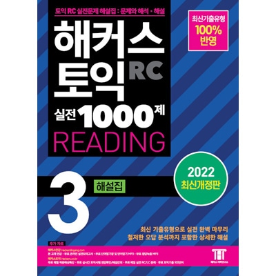 韓国英語教材 HACKERS ハッカーズ TOEIC 実戦 1000題 3 RC リーディング 解説集