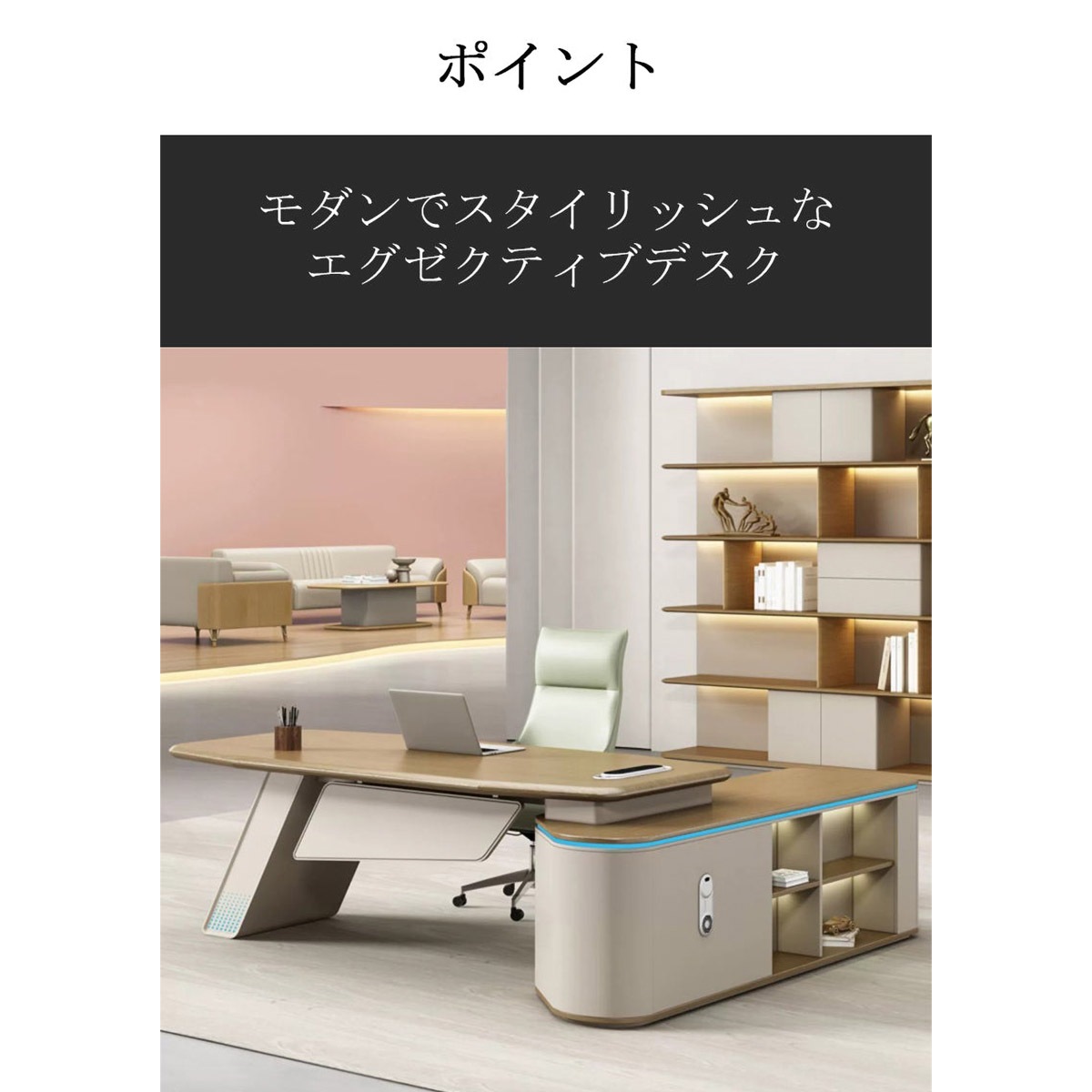 エグゼクティブデスク 社長デスク オフィスデスク ワークデスク ミーティングテーブル LEDライト付き スライドコンセント 指紋認...