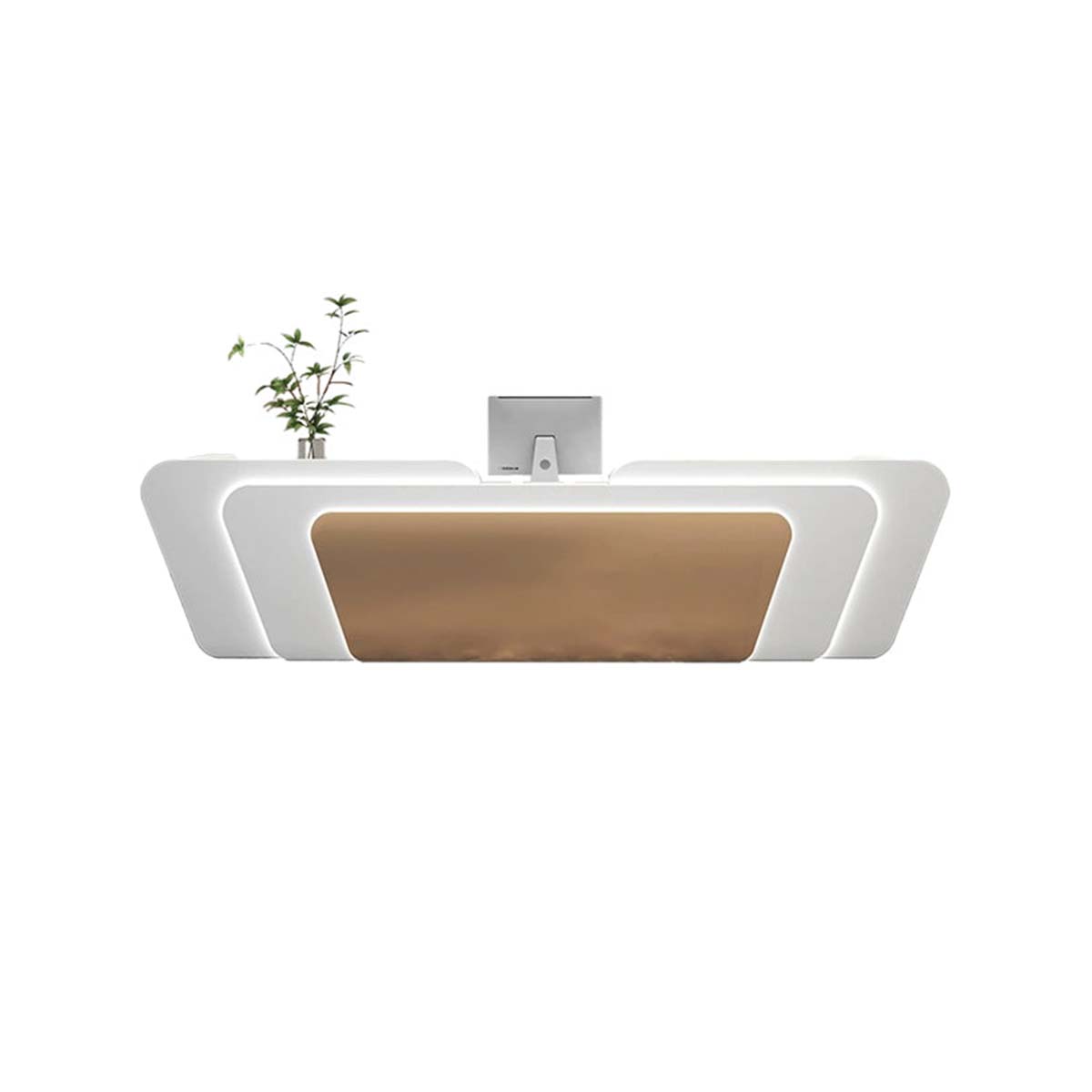 受付カウンター 受付台 オフィス受付 エントランス受付 作業台 ステンレス鋼 光沢感 LEDライト付き 大容量収納 モダン ホワイ...