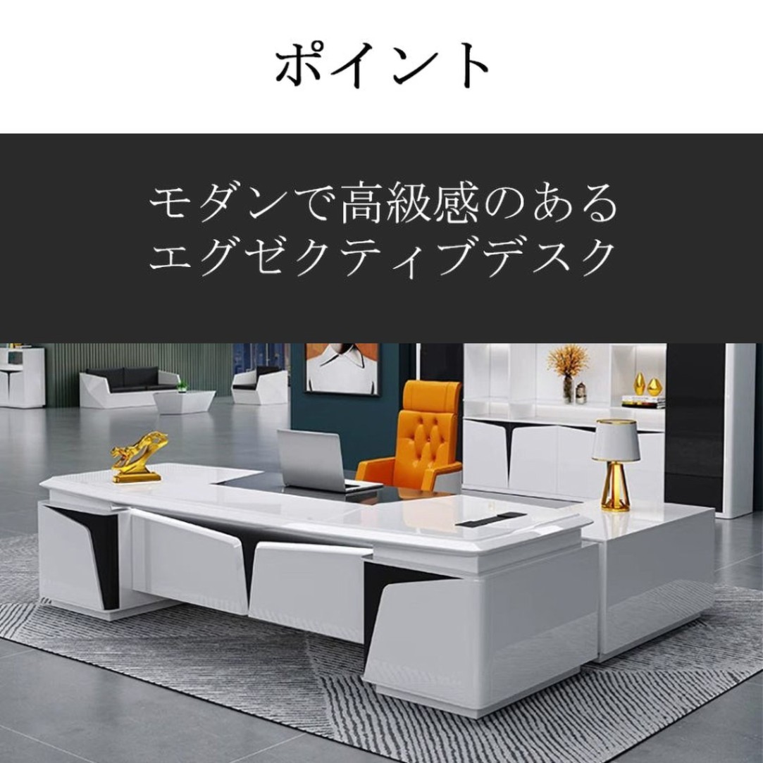 ワークデスク エグゼクティブデスク 役員デスク 社長デスク オフィスデスク 鏡面仕上げ サイドキャビネット 配線ボックス付き ダイ...