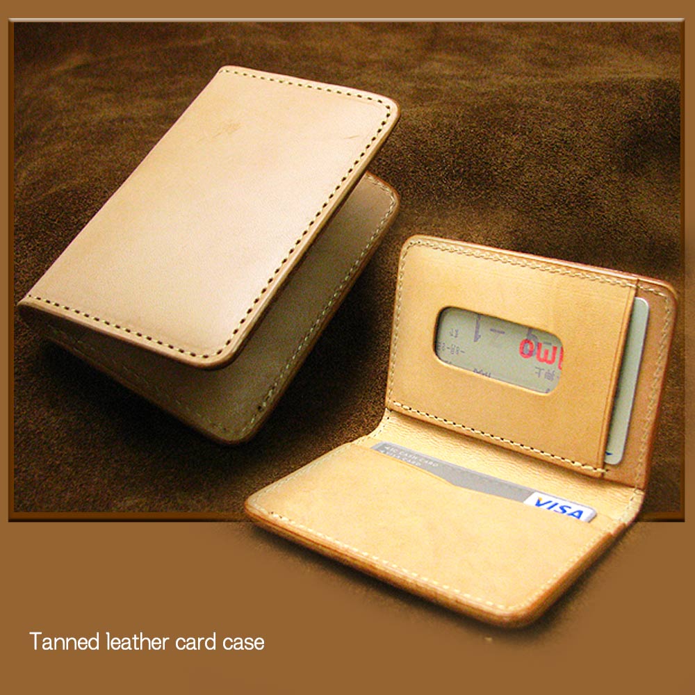 植物タンニン鞣し牛革(オイルレザー) 二つ折りレザーカードケース/パスケース/名刺入れ/定期入れ/革小物/ハンドメイド