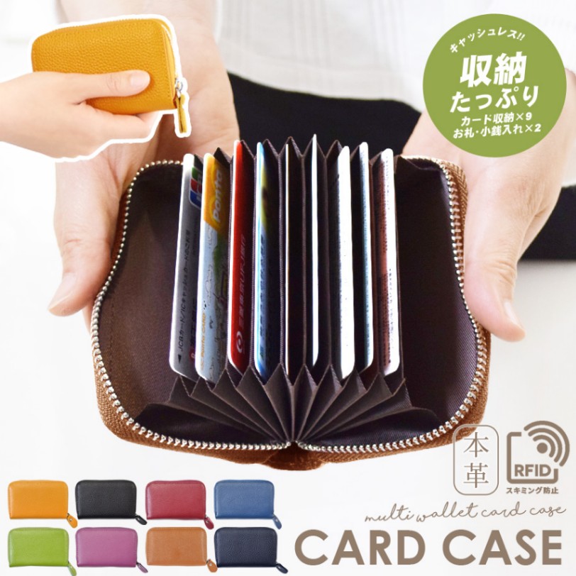 カードケース 本革 スキミング防止 RFID 11ポケット ファスナー ジップ 財布 じゃばら ミニ財布 【送料pt100】