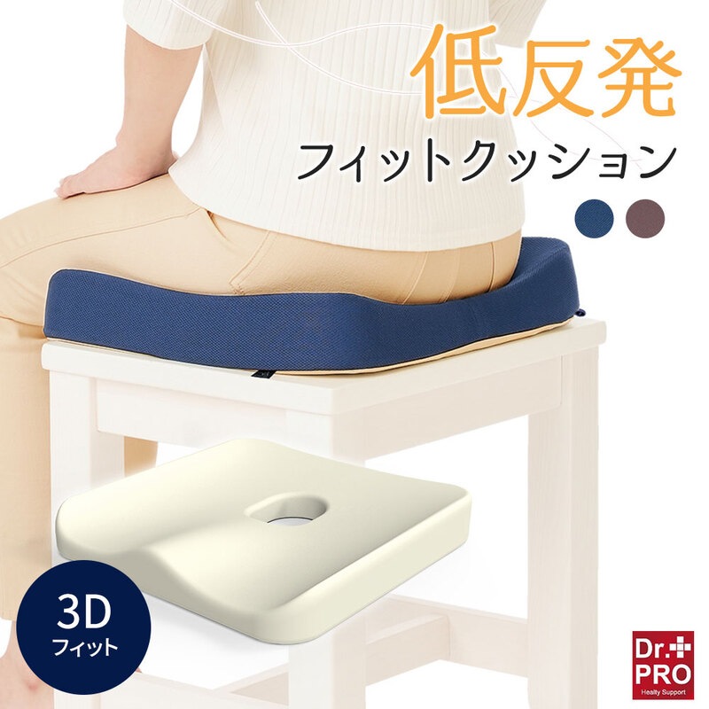 座布団 姿勢 椅子 イス グッズ 立体構造 丸穴 低反発ウレタン 洗えるカバー ネイビー ブラウン Dr.PRO低反発フィットクッ...