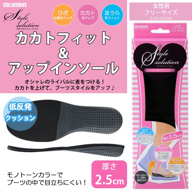COLUMBUS スタイルソリューション カカトフィット&アップ 低反発クッション インヒール 2.5cm シークレット 美脚 ブ...