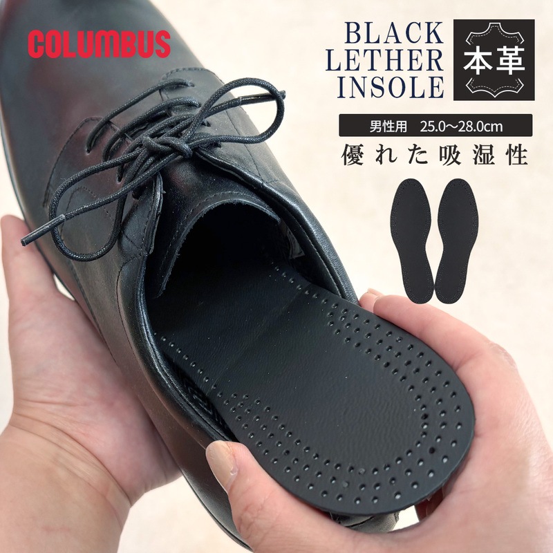 コロンブス 本革インソール 天然皮革 吸湿 ムレ防止 抗菌 防臭 ドライ クリーン ニオイ防止 クッション 中敷き ブラックレザー...