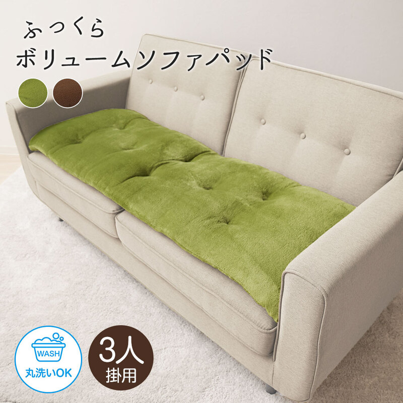 3人掛け用 ソファカバー パット ごろ寝 クッション 吸放湿綿 厚手 昼寝 丸洗い グリーン ブラウン 洗える!ふっくらボリューム...