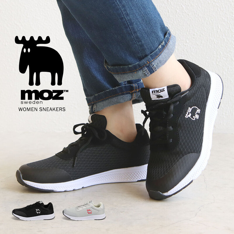 moz スニーカー レディース 黒 ローカット 軽量 メッシュ 通気性 シンプル 無地 高反発クッション 屈曲性 シューズ 紐靴 ...
