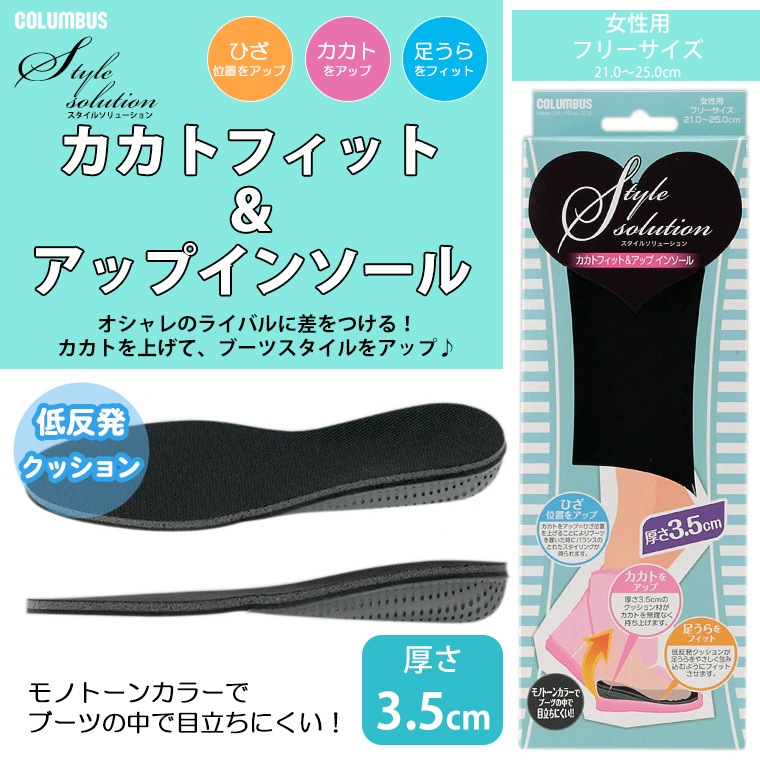 COLUMBUS スタイルソリューション カカトフィット&アップ 低反発クッション インヒール 3.5cm シークレット 美脚 ブ...