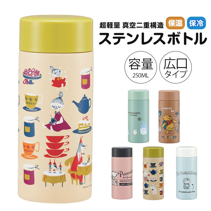 ステンレスボトル 250ml 軽量 保冷 保温 広口 水筒 かわいい キャラクター 小さめ 子供 プーさん ムーミン トトロ 25...