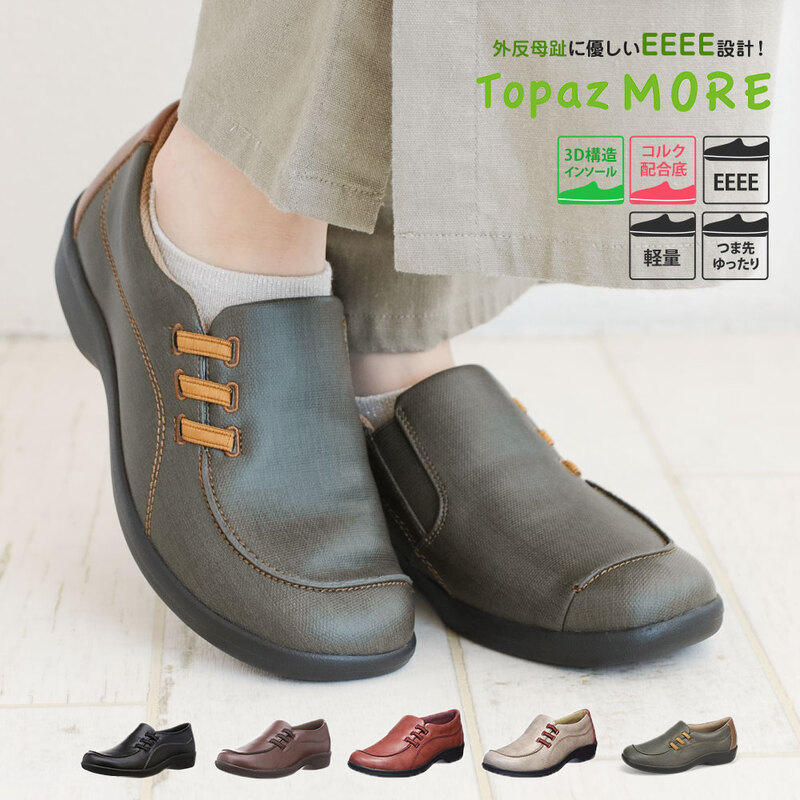 トパーズモア コンフォートシューズ レディース 4e 幅広 ウォーキングシューズ 黒 外反母趾 母の日 旅行 ブラウン ネイビー ...
