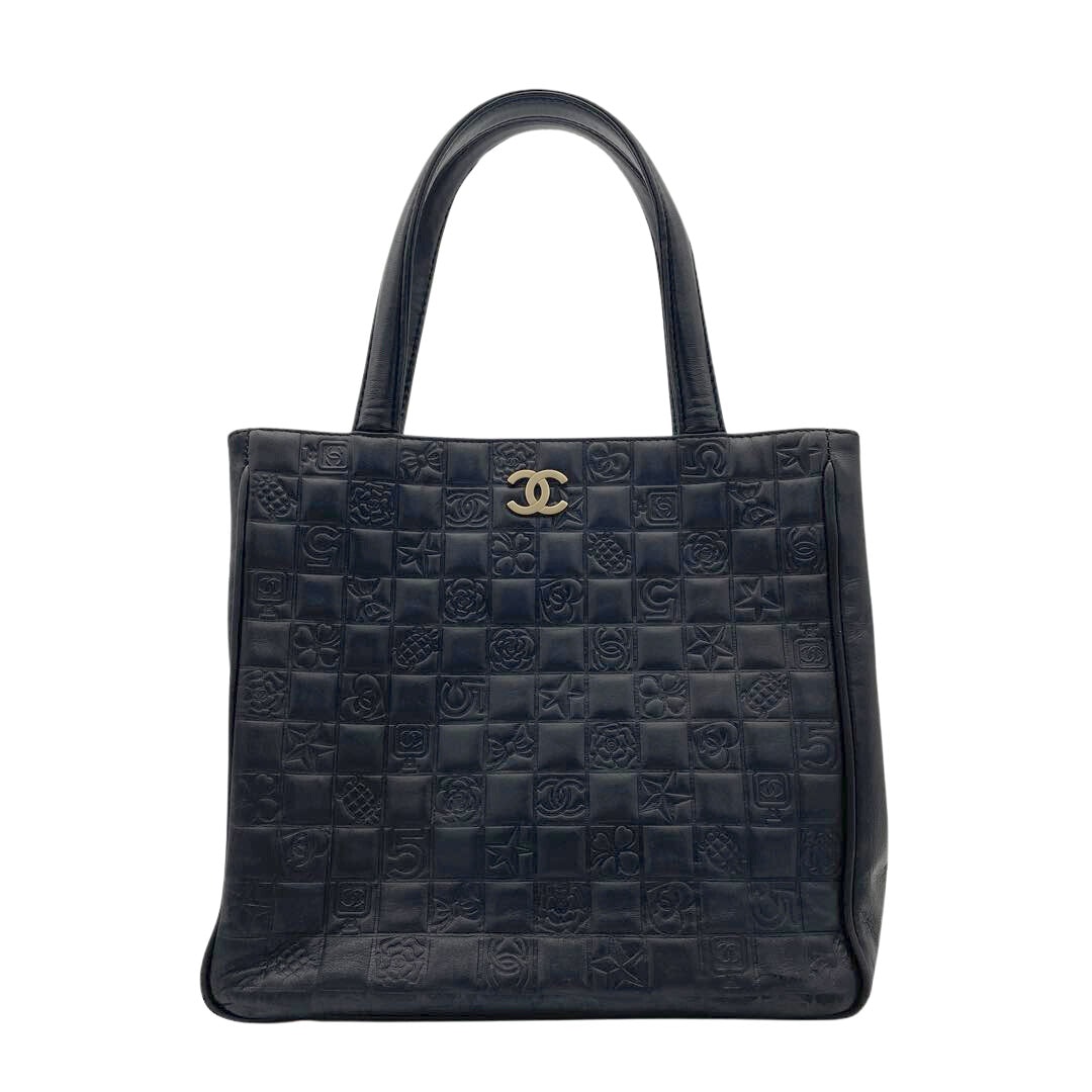 CHANEL シャネル ミニトートバッグ チョコバー アイコン 型押しレザー ブラック ゴールド金具 8番台