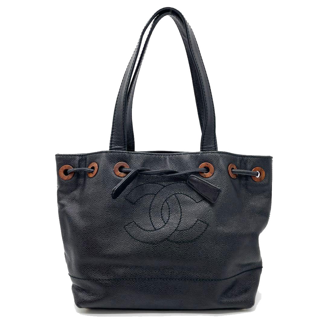 CHANEL シャネル 巾着式トートバッグ ココマーク キャビアスキン ウッド調 ブラック 7番台