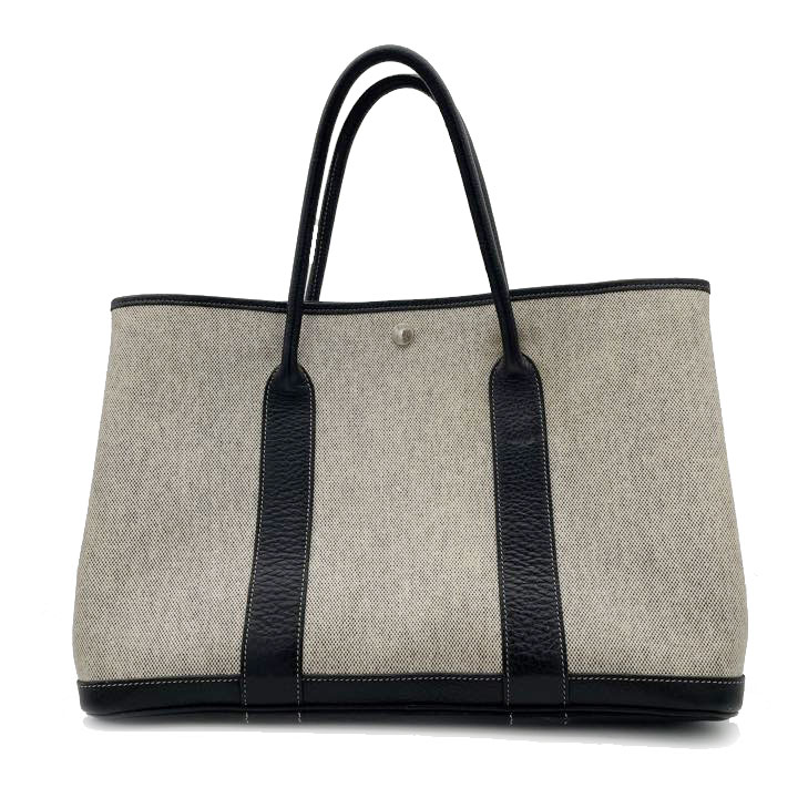 HERMES エルメス トートバッグ ガーデンパーティPM トワルアッシュ レザー グレー ブラック T刻印
