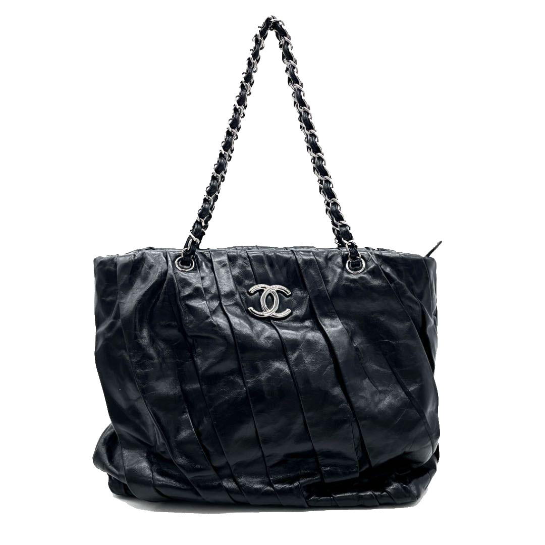 CHANEL シャネル チェーンショルダー トートバッグ レザー ブラック シルバー金具 13番台
