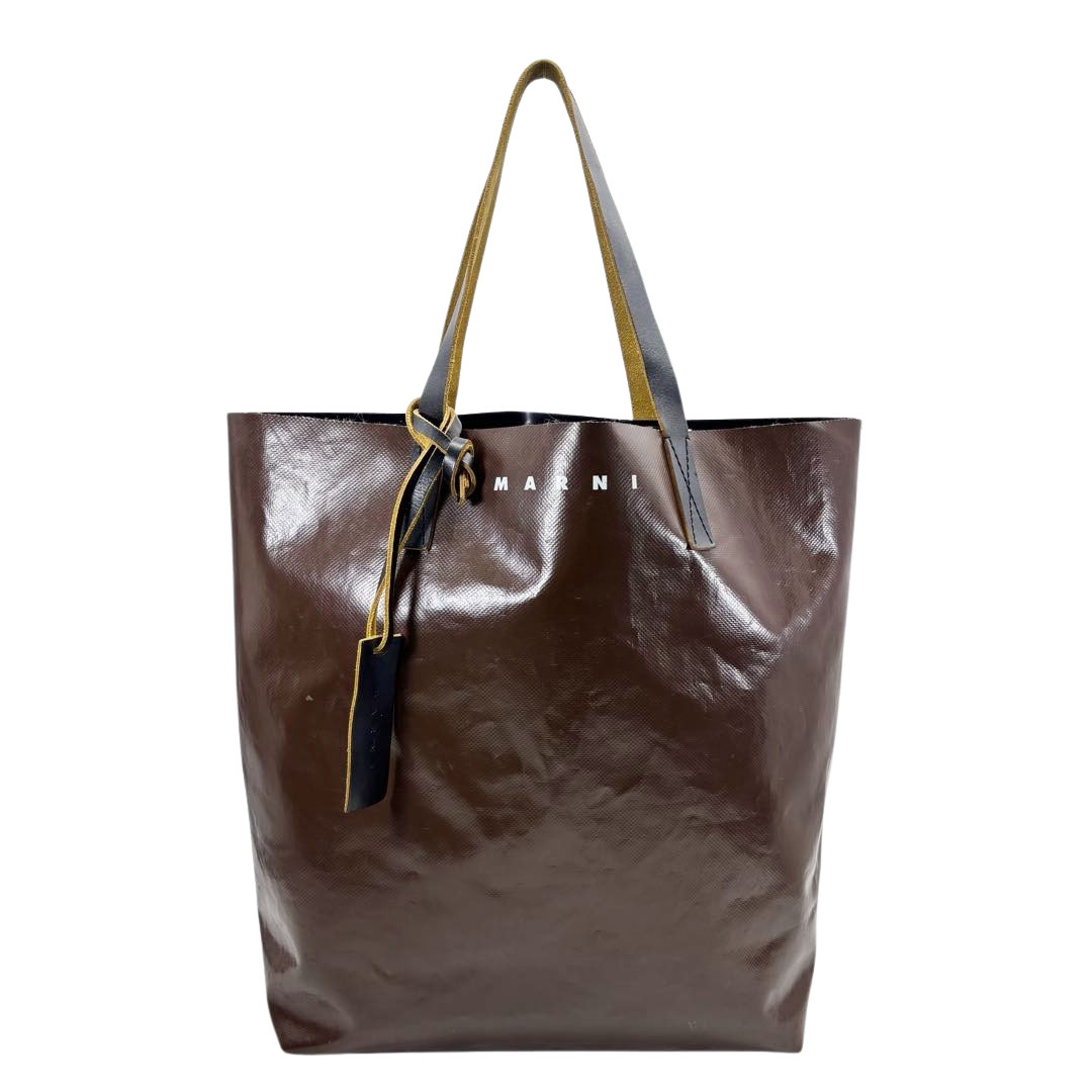 MARNI マルニ トートバッグ TRIBECA バイカラー ロゴ PVC/レザー ブラウン/ブラック