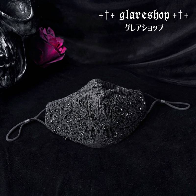 glareshop グレアショップ「S/M.M」Za028-B■ゴスロリ パンクゴージャス十字架付きビーズ刺繍マスク 黒 レディー...