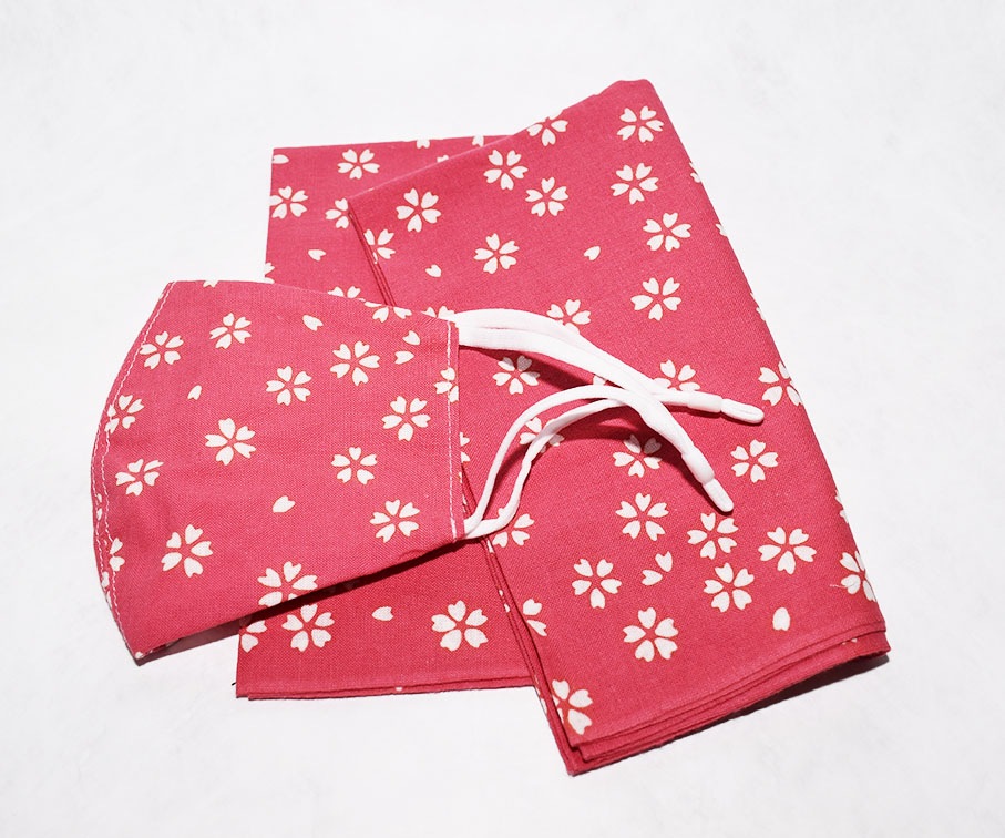 梨園染めマスク・手ぬぐいセット 桜文様
