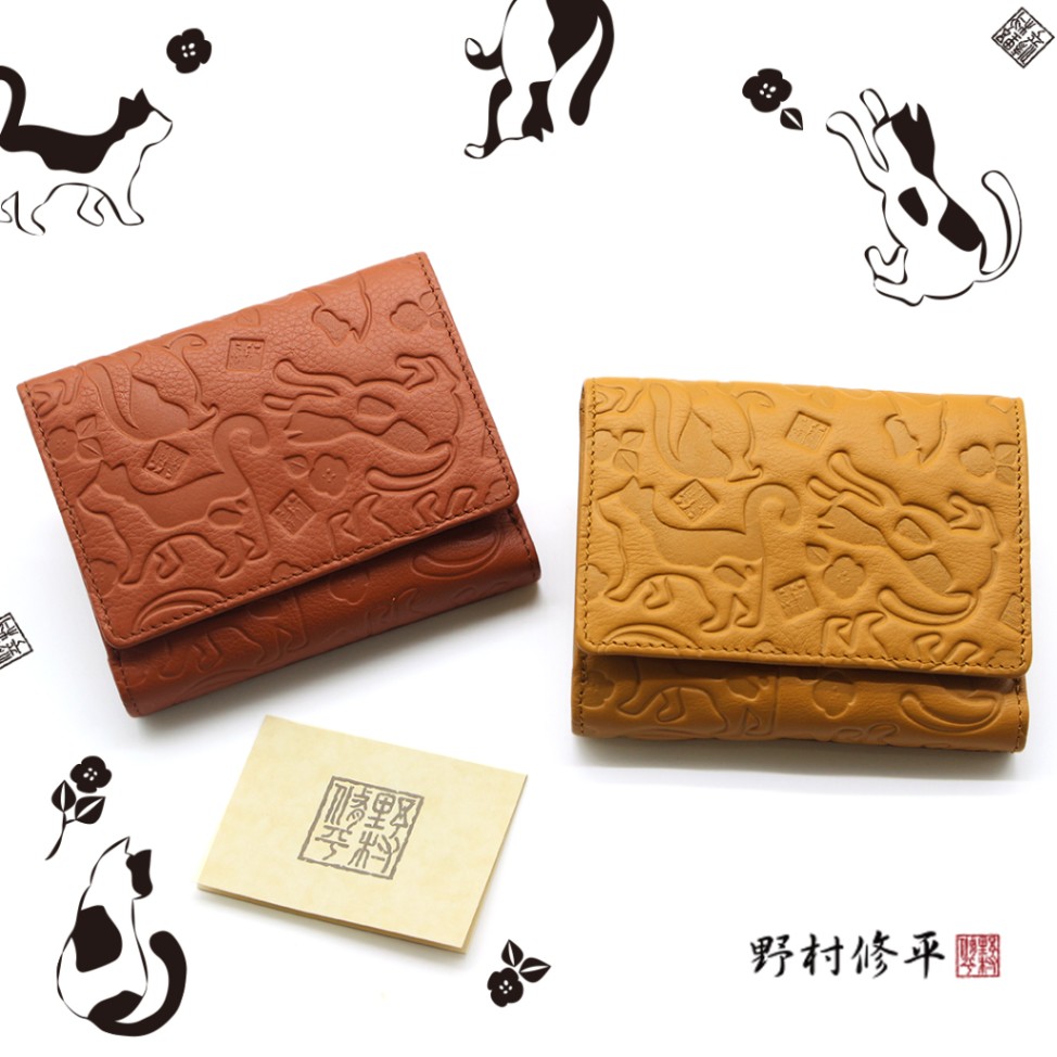 【野村修平/ナダヤ】猫 二つ折り財布 本革 [nom-58201]