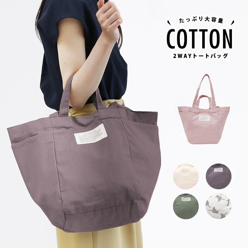 トートバッグ レディース 軽量 a4 2way 手提げ 無地 普段使い マザーズバッグ 白 猫 ネコ キャット アイボリー グレー...