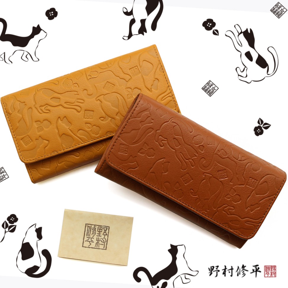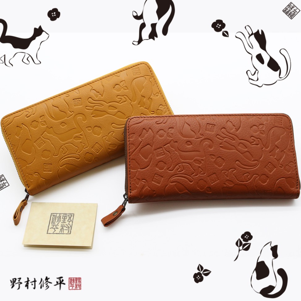 【野村修平/ナダヤ】猫 ラウンドファスナー長財布 本革[nom-58202]