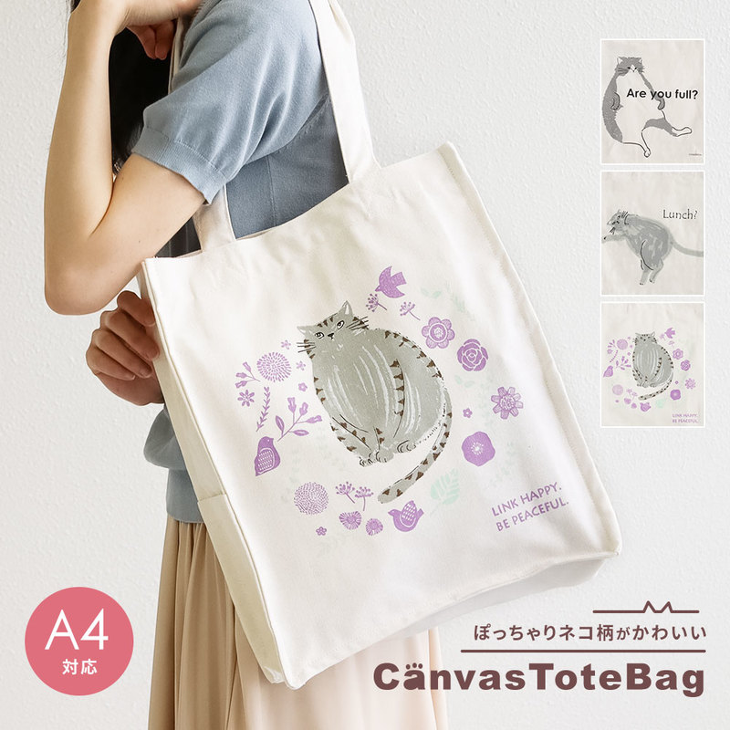 トートバッグ レディース a4 縦型 軽量 帆布 キャンバス 肩掛け ネコ柄 ねこ 猫 プリント 手提げ ショルダー コットン マ...