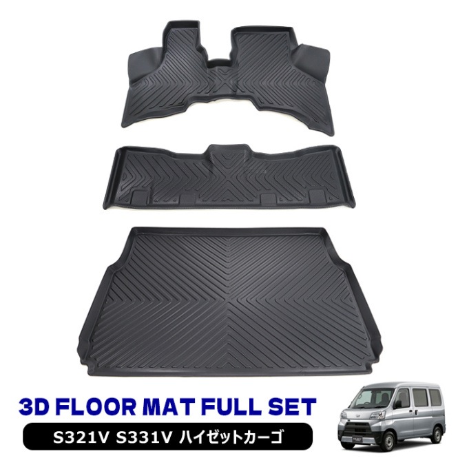 S321V S331V ハイゼットカーゴ 3D フロアマット 前後 ラゲッジマット フルセット トランク 防水 防汚 TPO素材 ...