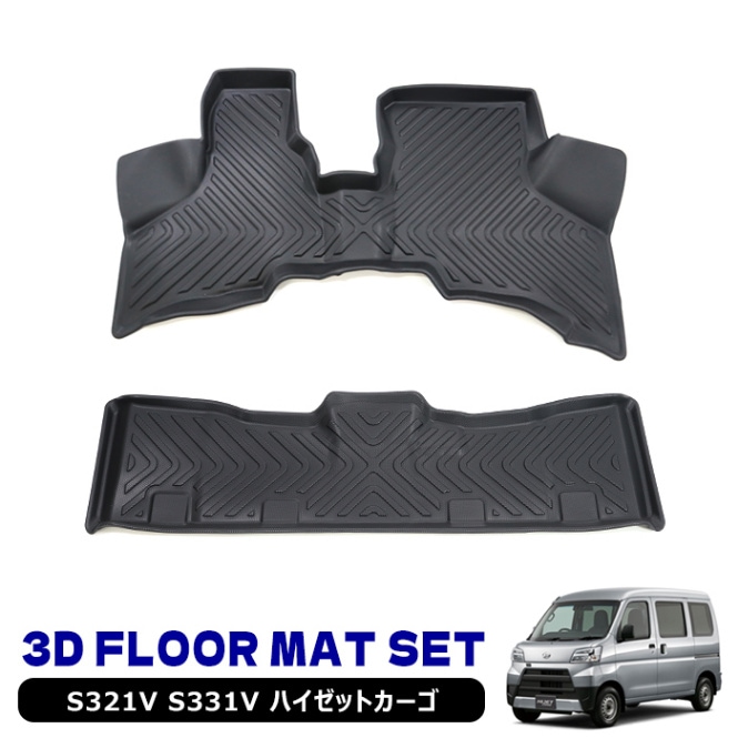 S321V S331V ハイゼットカーゴ 3D フロアマット 前後セット フロント セカンド 防水 防汚 TPO素材 ゴム ブラッ...