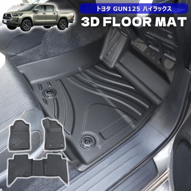 GUN125 ハイラックス 3Dフロアマット 防水 防汚 TPO素材 ブラック 3P AT車用 車種専用設計 ゴムマット ラバーマ...
