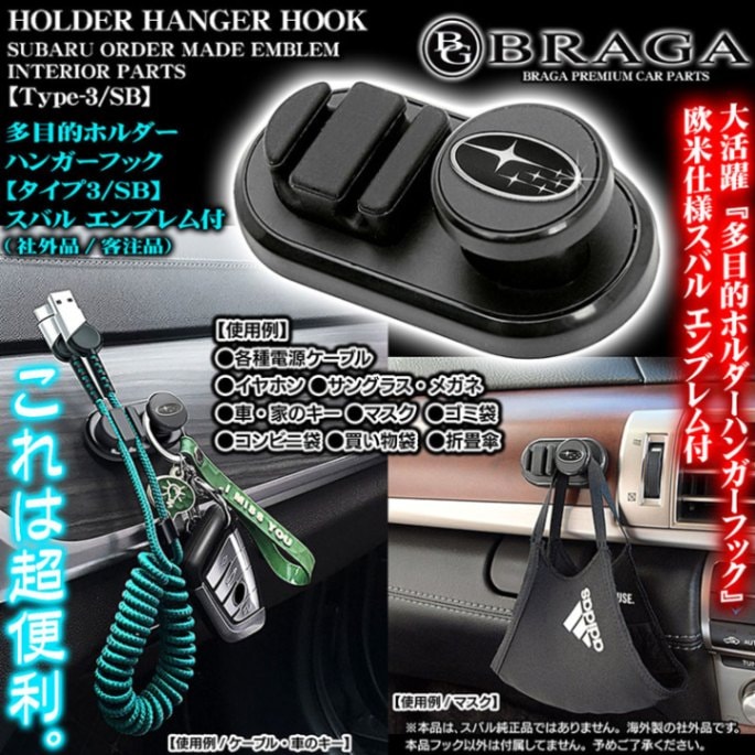 レガシィ/ワゴン/インプレッサ/多目的ホルダーハンガーフック/スバル エンブレム付/客注品【タイプ3/SB】ケーブル マスク 鍵 ...