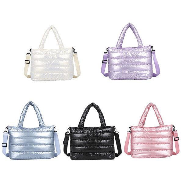 レディース トートバッグ ショルダーストラップ付き ポケット ジッパー メタリック キルティング カバン バッグ 斜め掛け 手提げ...