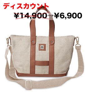 【Eco Herb】【サスティナブルなジュートバッグ】:本革x綿麻ショルダートートバッグ(台形型)裏付き-C