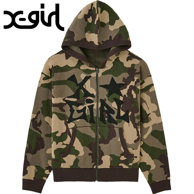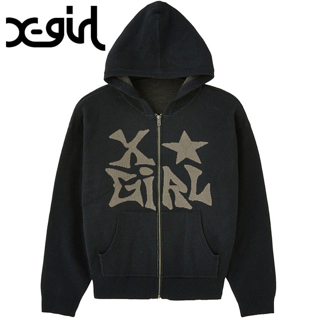 エックスガール X-girl ジャガードニット ジップアップフーディー [105253015007 FW25] JACQUARD ...