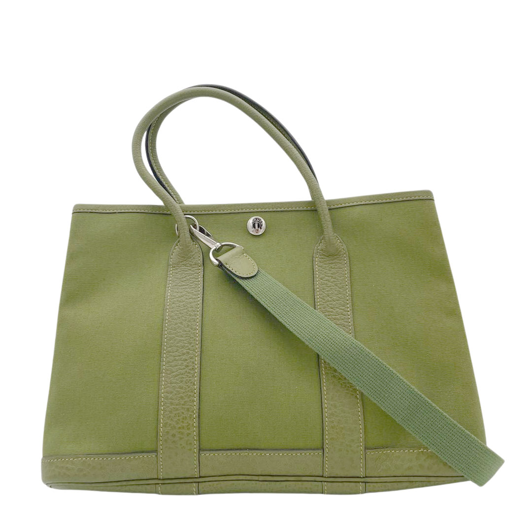 HERMES エルメス ガーデンパーティTPM ストラップ付き ブッフル トワルオフィシエ アニスグリーン シルバー金具 □J刻印...