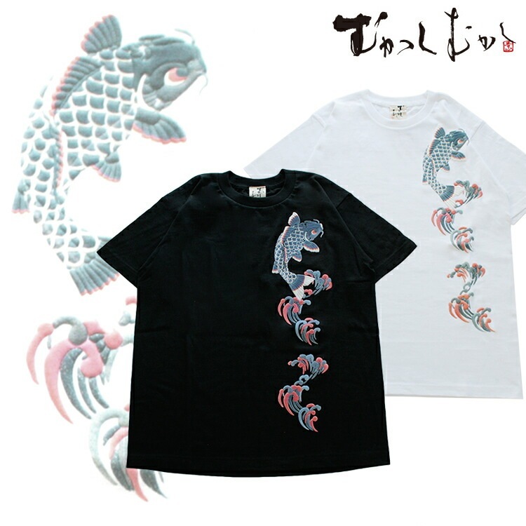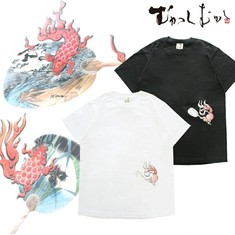和柄 Tシャツ メンズ 半袖 京都 和柄ブランド 手描友禅 京高盛絵 プリント むかしむかし 登鯉 (赤黒)